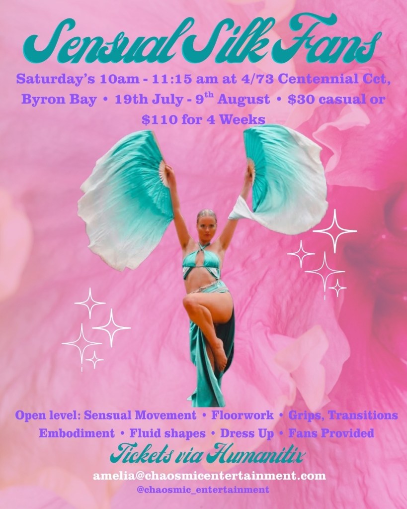 Awaken your sensuality and reconnect with your body in this luscious series of embodied dance, silk fan technique and empowered self-expression.