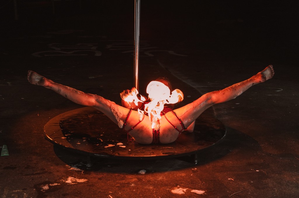 Experience the power, grace, and seduction of pole dance striptease, where strength meets sensuality in a gravity-defying performance. Perfect for audiences that appreciate both athletic artistry and erotic edge, these acts can include fire props, fire eating, or fire bubbles to bring an explosive twist to each spin and drop. The performance can be elegant, raunchy, or anywhere in between—customized to fit your event’s vibe.